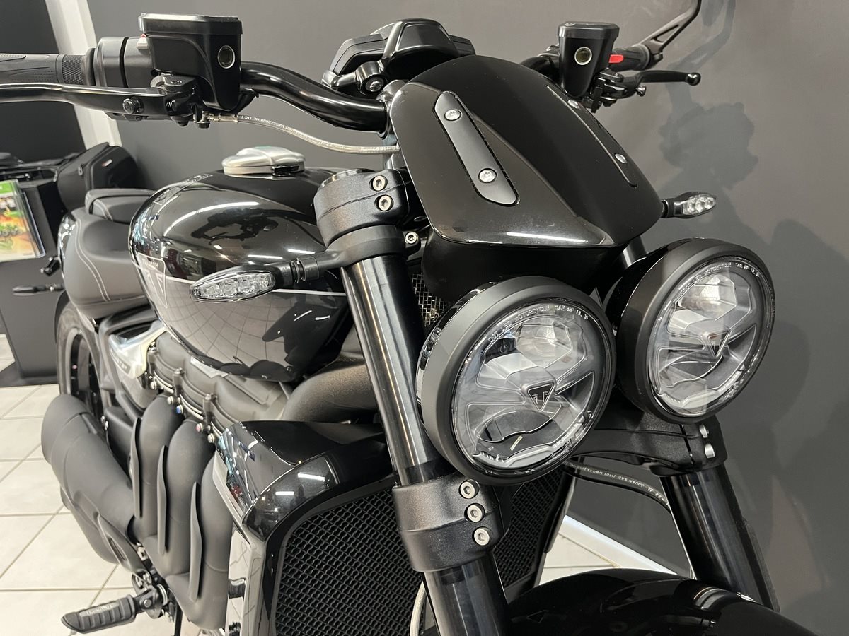 Der ultimative Power-Roadster mit noch mehr Ausstrahlung und rekordverdächtiger Leistung. Muskulöse Präsenz und makelloses Design verschmelzen mit der beeindruckenden Leistung des größten Serienmotorradmotors der Welt. Die unvergleichliche Leistung, das grandiose Fahrverhalten und die atemberaubende Ausstrahlung der neuen Rocket 3 vereinen sich zum ultimativen Fahrerlebnis. --- UM LANGE WARTEZEITEN ZU VERMEIDEN, UND PROBEFAHRTEN ZU ERMÖGLICHEN, VEREINBAREN SIE BITTE EINEN TERMIN