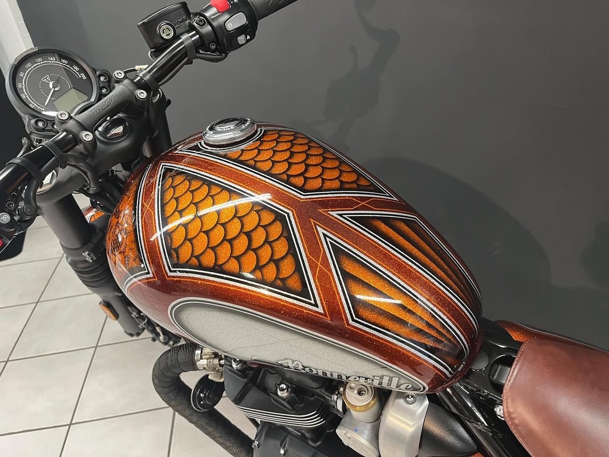 - NUBER EDITION - Sonderlackierung UNIKAT - Jekill & Hyde Klappenauspuff - Wunderkind-Custom Umbau - Statement-Seat Ledersitz original Triumph Mehr Details auf Anfrage oder vor Ort in unserem Showroom --- UM LANGE WARTEZEITEN ZU VERMEIDEN, UND PROBEFAHRTEN ZU ERMÖGLICHEN, VEREINBAREN SIE BITTE EINEN TERMIN